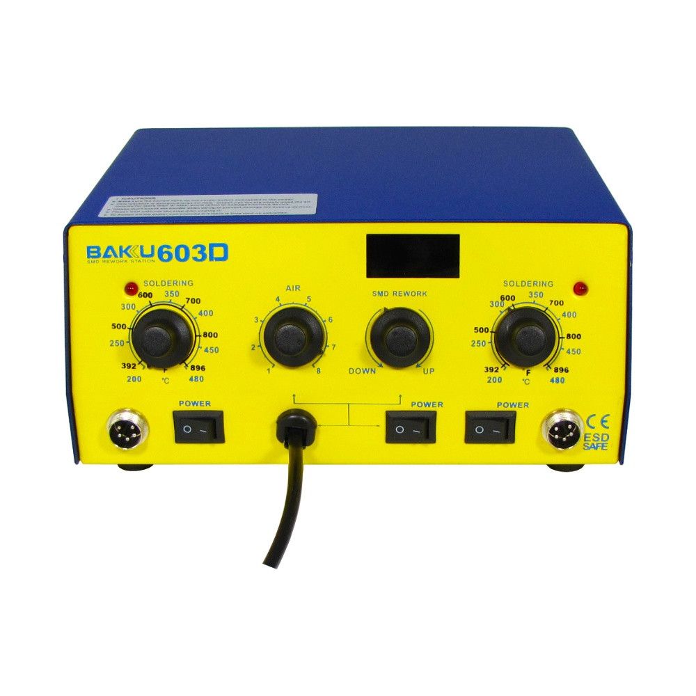 Цифрова паяльна станція BAKU BK-603D ідеально підходить для монтажу і демонтажу таких компонентів, як СПК, PLCC, BGA чіпи, а також плоских кабелів і коннекторів. Температурний діапазон паяльної станції BAKU BK-603D становить 150 - 500 ºC.