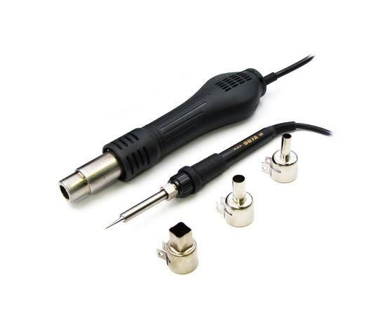 WEP 852D + FAN - це універсальна цифрова паяльна станція з компресорним феном та паяльником. Використовується як професіоналами, так і любителями для паяння простих схем та поверхневого монтажу компонентів BGA і SMD.