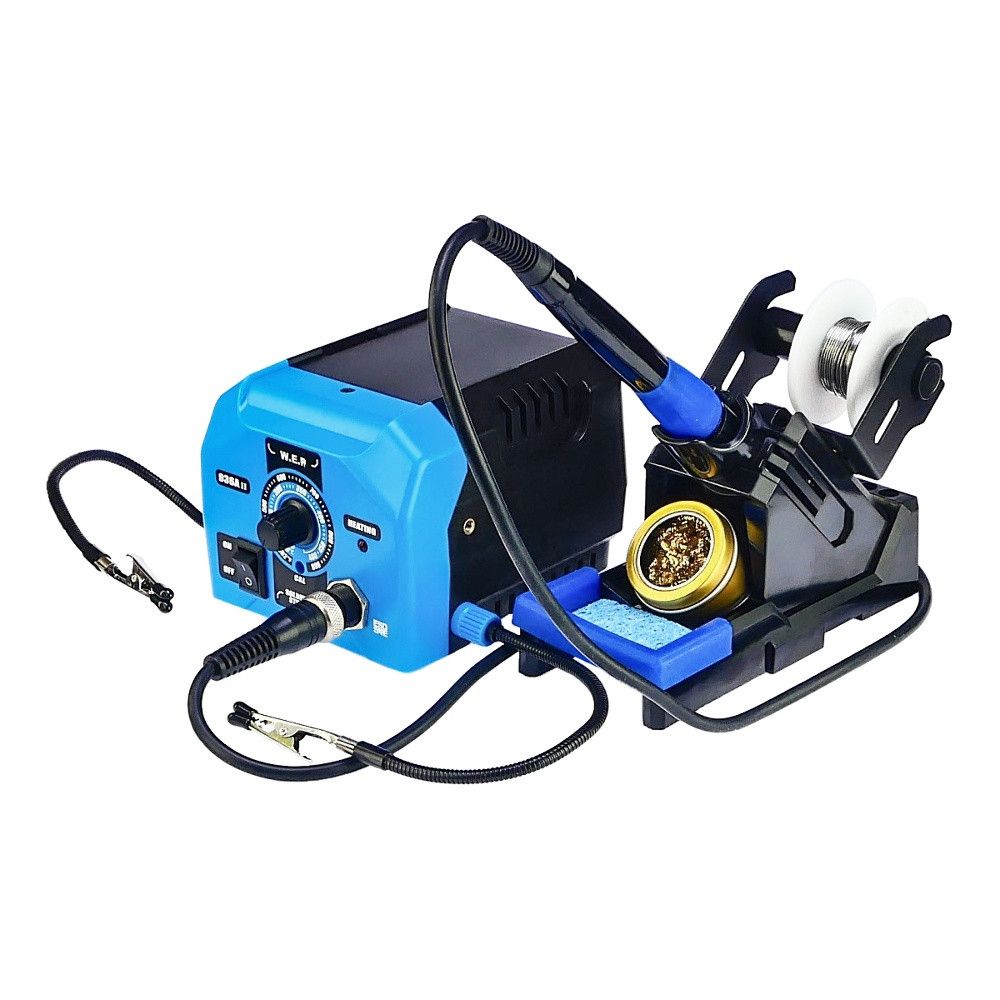 Паяльна станція WEP 936A-II – це компактна паяльна станція, оснащена паяльником. Ця паяльна станція має широкий температурний діапазон, що дозволяє працювати з різними видами матеріалів. Характерною рисою цієї паяльної станції є швидке нагрівання до потрібної температури, а тримач плат та припою забезпечує комфорт під час використання. Може використовуватись як професіоналами, так і любителями для пайки простих схем, поверхневого монтажу BGA і SMD компонентів.