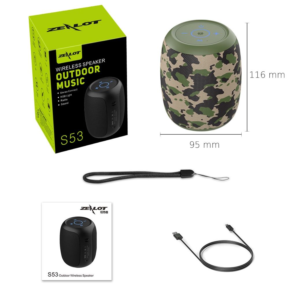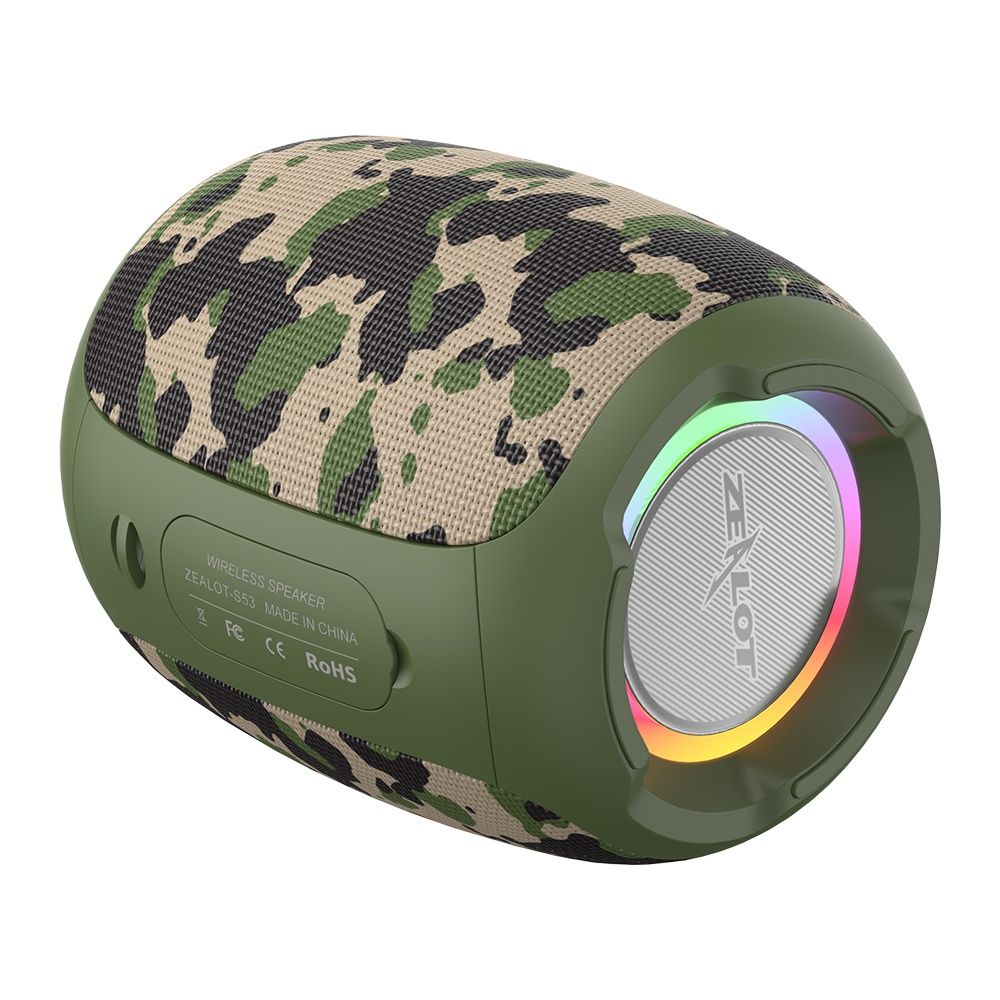 Портативна Bluetooth колонка ZEALOT S53, BT5.0, AUX, USB, TF, TWS, 10h з LED підсвічуванням camouflage green