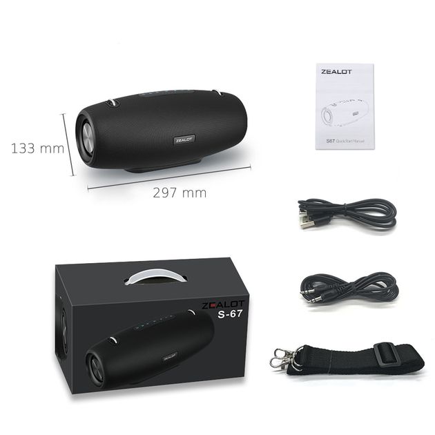 Портативна Bluetooth колонка ZEALOT S67, IPX6, BT, AUX, USB, TF, TWS, FM, black