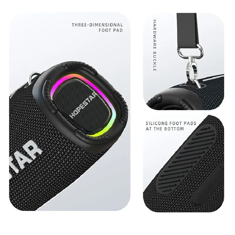 Hopestar A6 MAX – це потужна портативна колонка з насиченим стереозвуком, стильним дизайном та RGB-підсвічуванням. Завдяки високій потужності, якісним динамікам та захисту від вологи IPX6, ця модель ідеально підходить для використання як вдома, так і на вулиці.