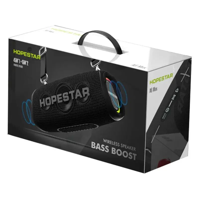 Bluetooth колонка HOPESTAR A6 MAX, IPX6, TWS, TF, USB, AUX, BT5.1, 80W, 12000 mAh, 10h, Black