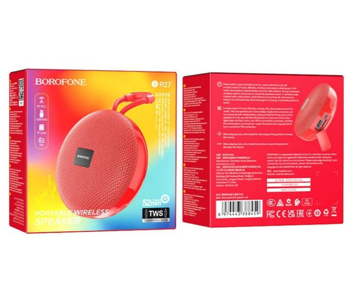 Портативна колонка BOROFONE BR27 Dear sports BT5.1, USB, AUX, FM, 5W, 5h speaker Red