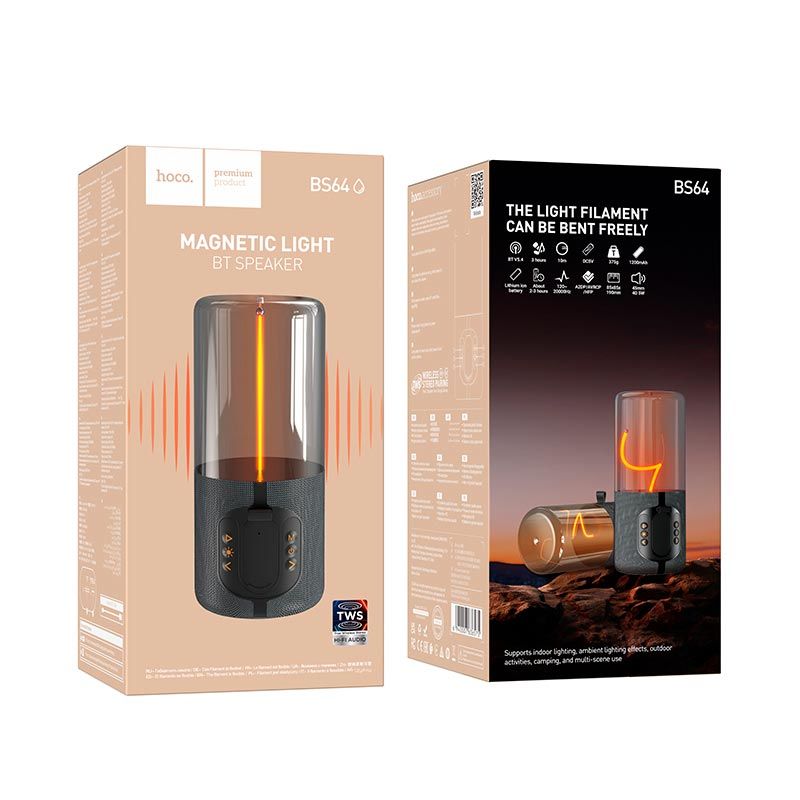 HOCO BS64 Rocker – це компактна та стильна портативна колонка, яка поєднує потужне звучання, зручність використання та додаткову функціональність у вигляді гнучкого магнітного світильника. Завдяки технології Bluetooth 5.4 забезпечується стабільне бездротове з'єднання, а кілька режимів роботи дозволяють відтворювати музику у зручному форматі.