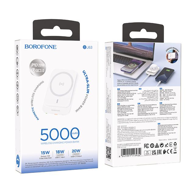 Повербанк Borofone BJ63 Nimble PD20W magnetic 5000mAh Білий