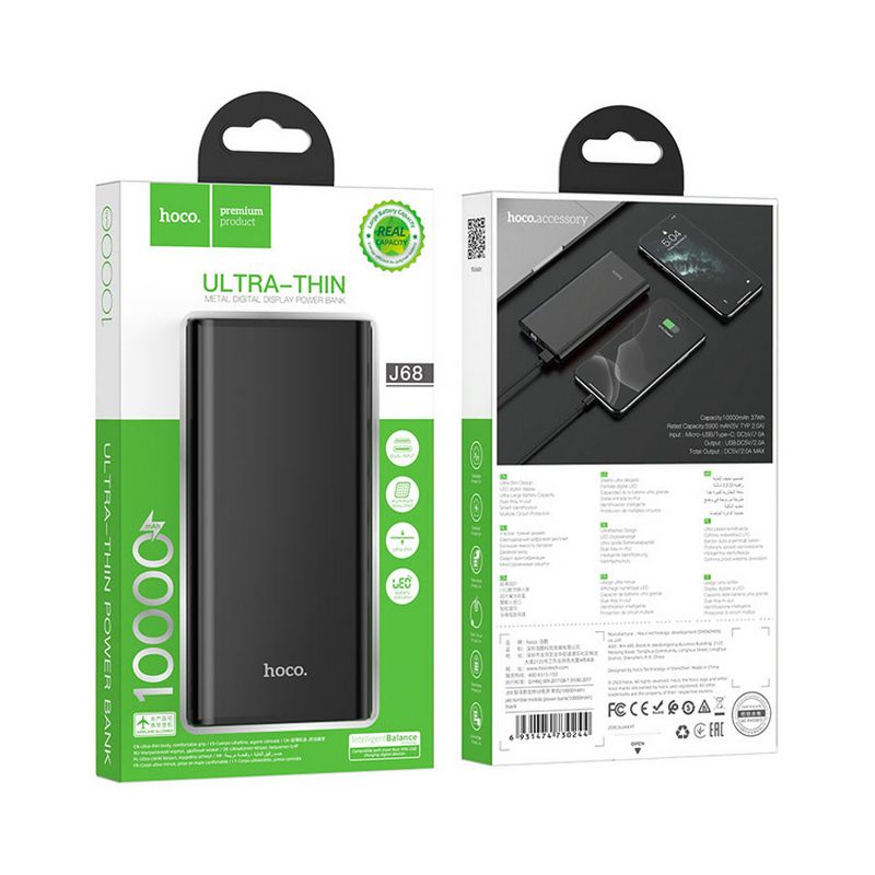Power bank Hoco J68 - стильний та необхідний аксесуар для активних користувачів електронних пристроїв. Зовнішній акумулятор продовжить автономну роботу вашого смартфона, планшета або смарт-годинника. Power bank оснащений роз'ємом USB та LED дисплеєм, на якому відображається інформація про рівень заряду акумулятора. Корпус із алюмінієвого сплаву захистить пристрій від механічних пошкоджень.