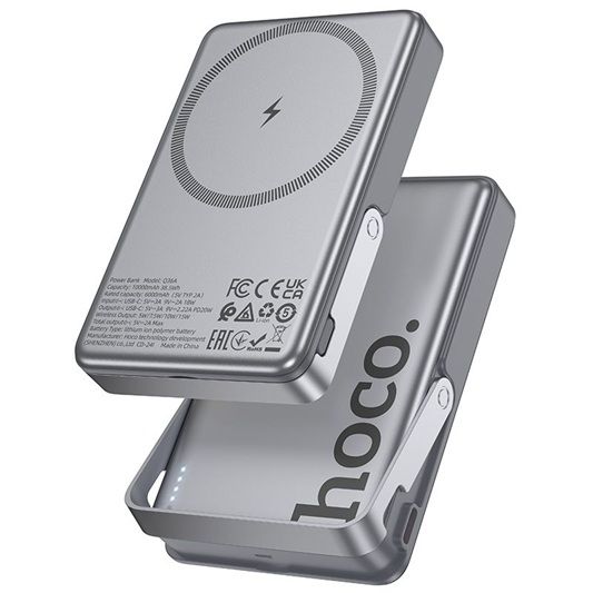 Hoco Q36A – це портативний акумулятор ємністю 10 000 mAh, який підтримує швидку дротову та бездротову зарядку, включаючи MagSafe для iPhone 12-16. Його тонкий алюмінієвий корпус, багаторівневий захист та складна підставка роблять його ідеальним вибором для активних користувачів.
