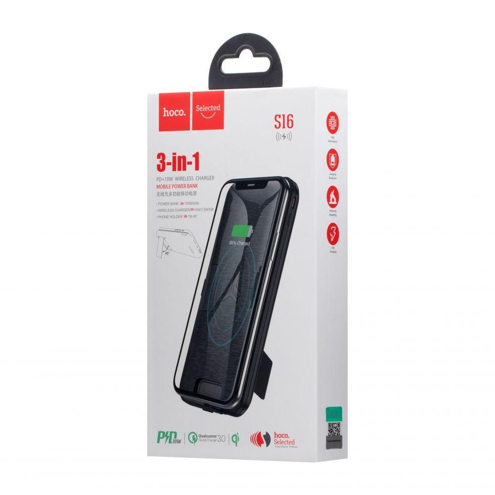 Повербанк Hoco S16 Energy Lake PD + 10w Wireless 10000 mAh Чорний