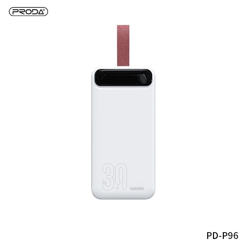 Повербанк Remax Proda PD-P96 Leading series (30000 mAh/Out: 2USB 5V/2A/In: Type-C, micro-USB 5V/2A) з LED Дисплеєм та ліхтариком, Білий