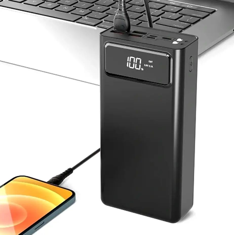 - Забезпечує достатній заряд, щоб кілька разів повністю зарядити смартфон або планшет.