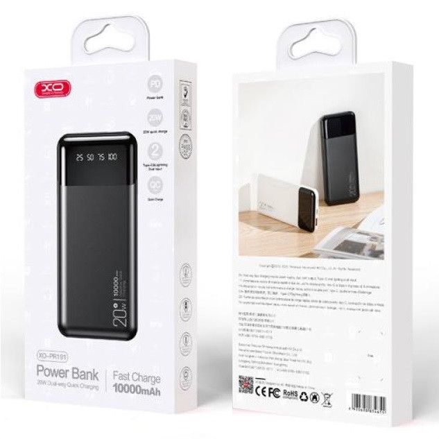 Повербанк XO PR191 PD20W/QC18W digital light display 10000 mAh Чорний