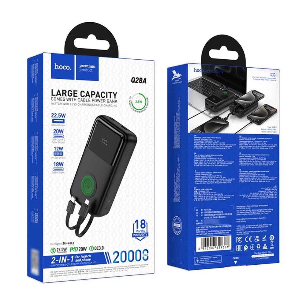 Power Bank Hoco Q28A — це універсальний та надійний зовнішній акумулятор з високою ємністю 20000 mAh, який підходить для зарядки смартфонів, планшетів, смарт годинників та інших гаджетів. Завдяки підтримці технологій швидкої зарядки та багаторівневого захисту, цей пристрій забезпечує зручність та безпеку під час використання. Універсальність пристрою та передові технології забезпечують швидке та безпечне заряджання всіх ваших гаджетів, роблячи його незамінним аксесуаром для подорожей, активного відпочинку та щоденного використання.