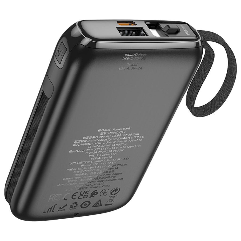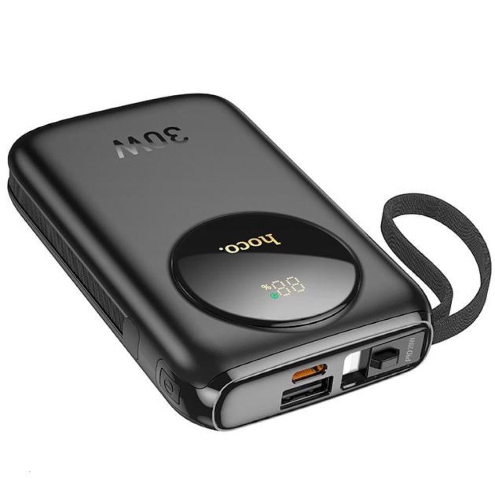 Портативний зарядний пристрій Power Bank Hoco Q19 Lucky 30W, з цифровим дисплеєм, вбудованим кабелем та ремінцем, 10000 mAh, Чорний;
