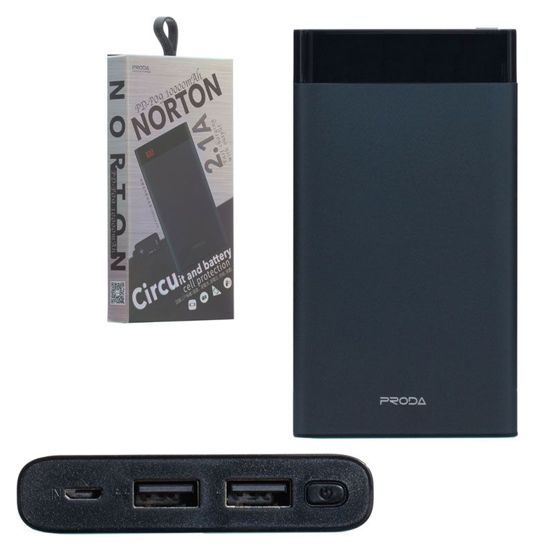 Зовнішній акумулятор (Power Bank) Remax Proda PD-P09 Norton 10000 mAh (графіт) у Києві та Україні зі швидкою доставкою Новою Поштою. Огляд та оплата при отриманні або за передоплатою за Вашим бажанням. Деталі дізнайтесь у нашого менеджера, звернувшись за контактами продавця.