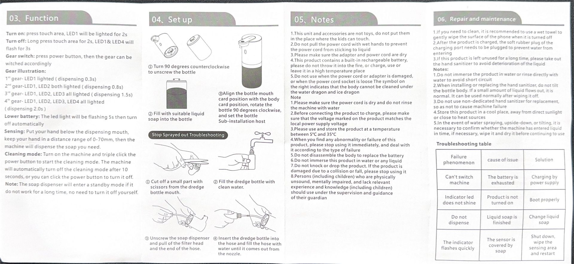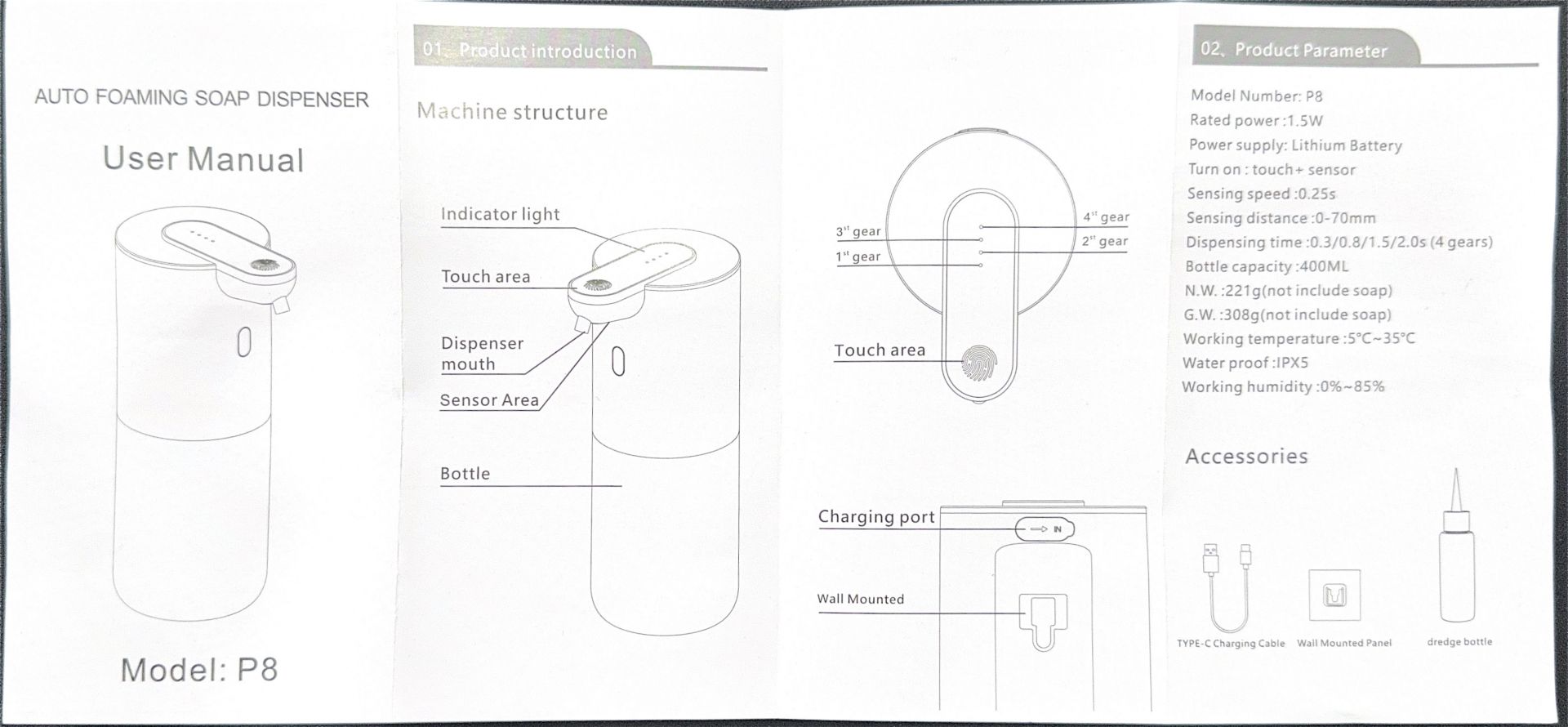 Дозатор створює піну, що робить використання мила ще більш економічним та приємним. Цей дозатор для мила має 4 рівні подачі мильної піни, а кількість пінки можна регулювати за допомогою кнопки сенсора.