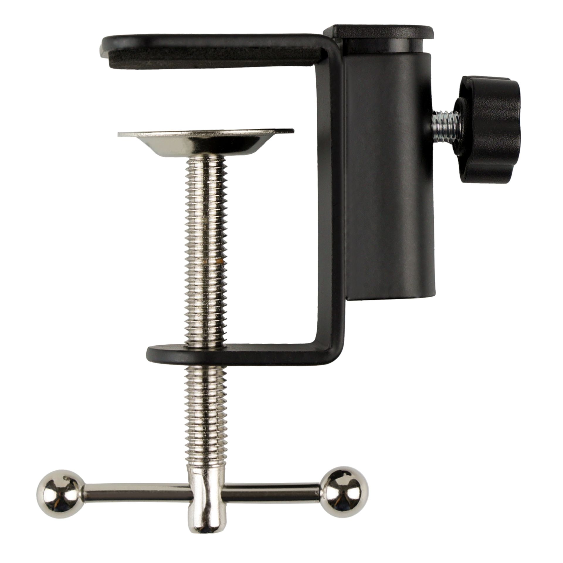 Чорний штатив-пантограф підпружинений на струбцині з двома затискачами