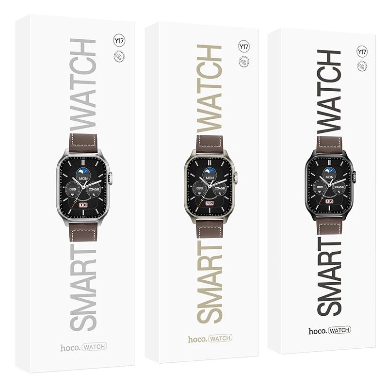 Смарт годинник Hoco Y17 - це високотехнологічний гаджет, який допоможе стежити за важливими показниками організму в режимі реального часу протягом усього дня, значно спростить заняття спортом та взаємодію зі смартфоном. Ця модель привертає увагу оригінальним дизайном, вражає широким функціоналом та автономністю. Завдяки практичній формі, компактним розмірам та класичному шкіряному ремінцю вона зручно та надійно фіксується на руці. Корпус годинника виконаний у прямокутній формі із округленими кутами та якісно зібраний у повній відповідності до стандарту IP67.
