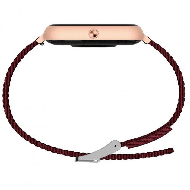 Металевий вологозахисний корпус дозволить не хвилюватися при попаданні вологи на смарт-годинник. Ремінець виготовлений із зносостійкої тканини.