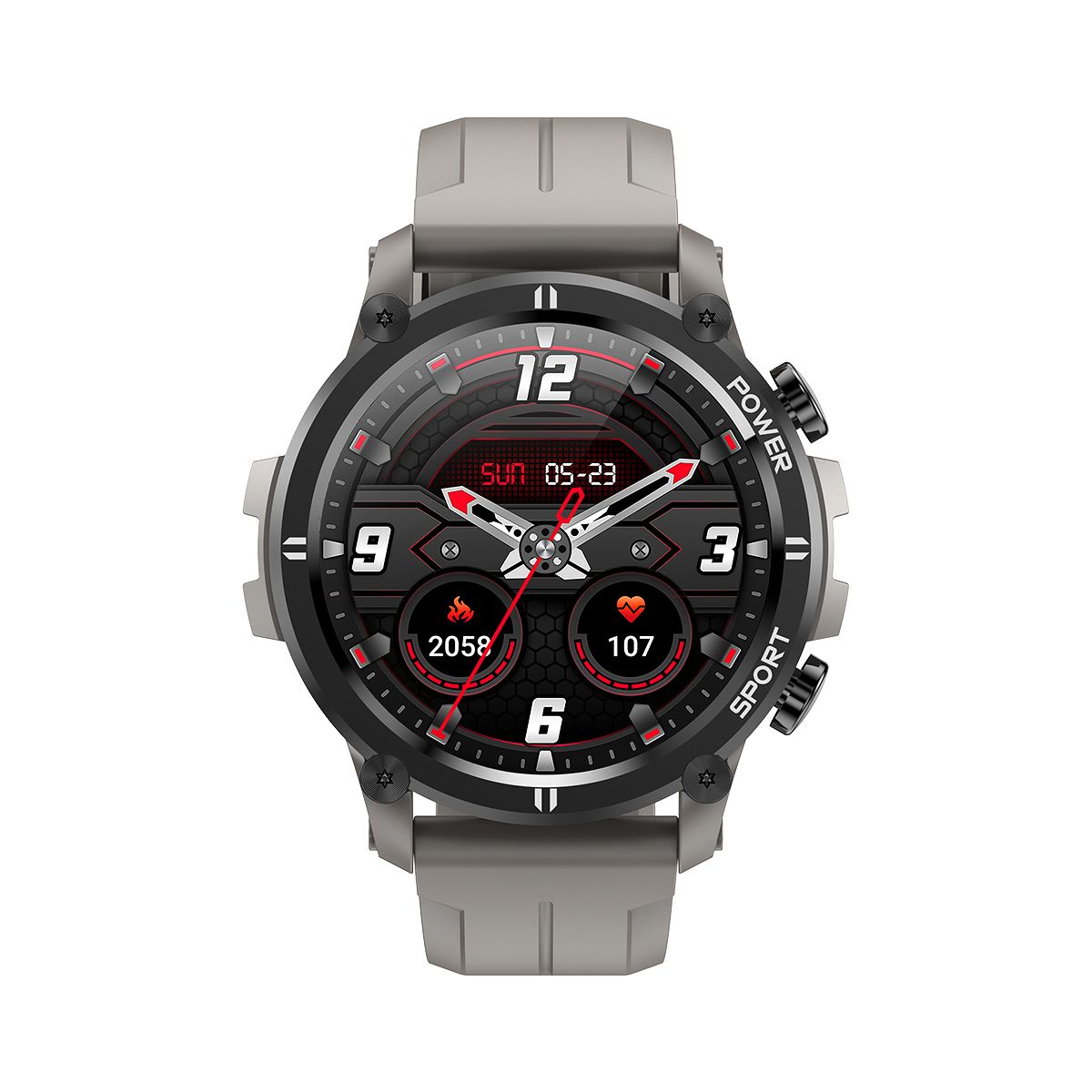 Смарт годинник XO H32 - виготовлений у міцному пластиковому корпусі, що має розміри 55х52х12 мм. Ця модель оснащена сенсорним дисплеєм круглої форми з діагоналлю 1,28 дюйми. Для керування на бічній панелі корпусу розташовані дві механічні кнопки. На задній частині корпусу знаходяться контакти магнітного підключення зарядного пристрою. До корпусу годинника прикріплений якісний, гнучкий та пружний силіконовий ремінець, його довжина включаючи довжину корпусу девайсу становить 247 мм, а ширина 21 мм.