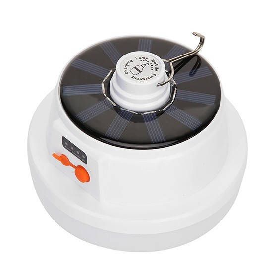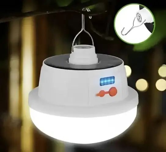Ця кемпінгова лампа має кріплення у вигляді гачка, який можна використовувати будь-де. Вона може заряджатися як від сонячної панелі, так і від USB. Ця лампа для кемпінгу дуже проста у використанні, оскільки управляється лише однією кнопкою. Вона має невелику вагу та компактний розмір, а ще в ній є захист від пилу і до того ж, вона має 5 режимів.