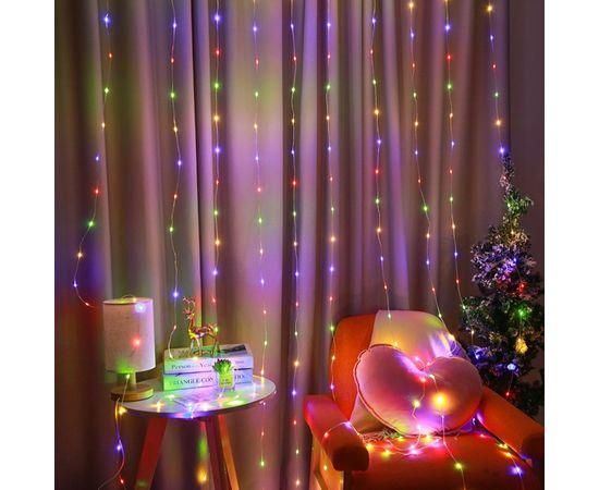 Світлодіодна гірлянда USB штора RGB, 3x3 м, 8 режимів, з пультом керування
