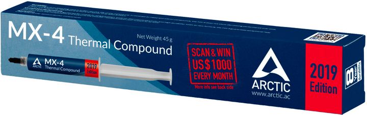 Термопаста ARCTIC MX-4, 8,5 Вт/(мК), 870 пуаз, 2,5 г/см³, 45г, 2019 Edition, 3,8 × 10¹³ Омсм