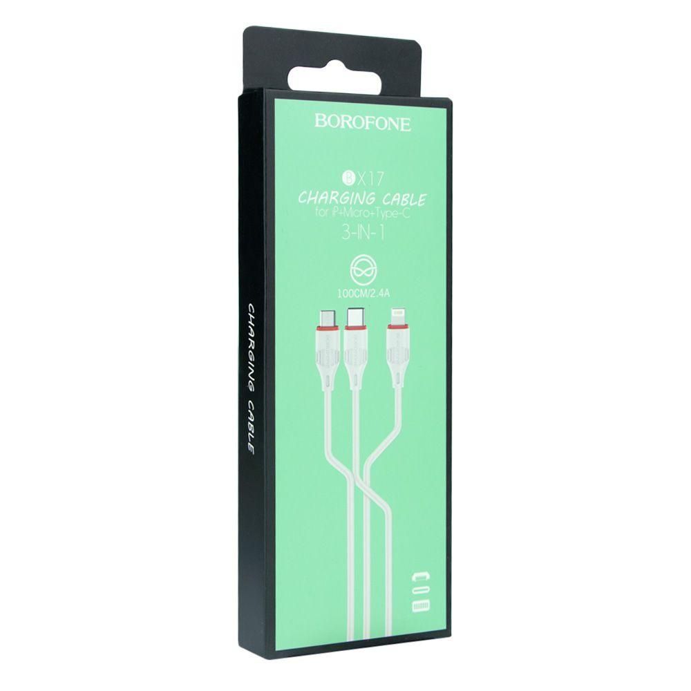 USB Borofone BX17 3-in-1 IP+Micro+Type-C Білий