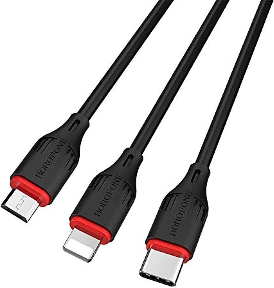 USB Borofone BX17 3-in-1 IP+Micro+Type-C Чорний