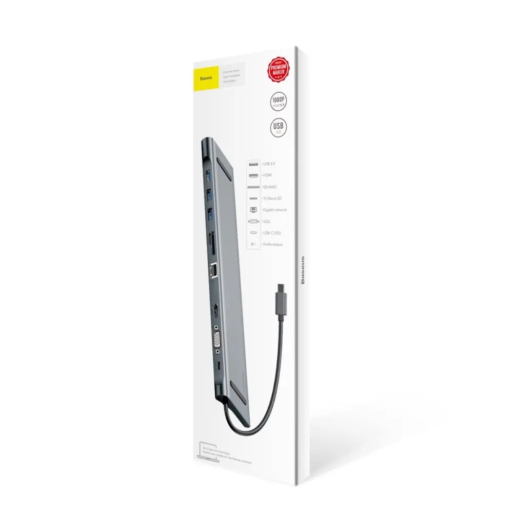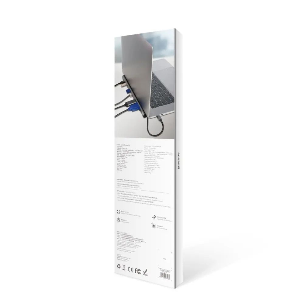 USB-Hub Baseus Enjoyment Series Type-C Notebook HUB Adapter (GrayPD/HDMI/VGA/RJ45/SD/USB*3/Adapter) CATSX-F0G