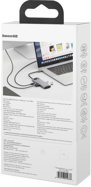 Baseus 5in1 Metal Gleam HUB Adapter - це високотехнологічний пристрій, який перетворює один Type-C порт вашого ноутбука на п'ять додаткових інтерфейсів. Сучасний дизайн, надійні матеріали та підтримка швидкої зарядки роблять цей хаб ідеальним вибором для дому, офісу чи подорожей.