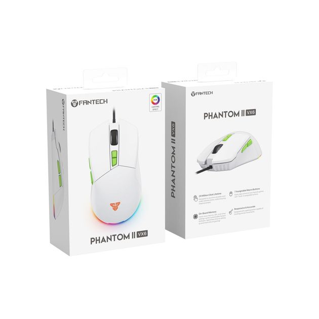 - Fantech VX6 Venom Go (Phantom II) оснащена 7 програмованими кнопками з ресурсом натискань до 20 мільйонів разів. Корпус із міцного пластику та зносостійкі полімерні глайди на нижній панелі забезпечують довговічність та стійкість до щоденного інтенсивного використання.
