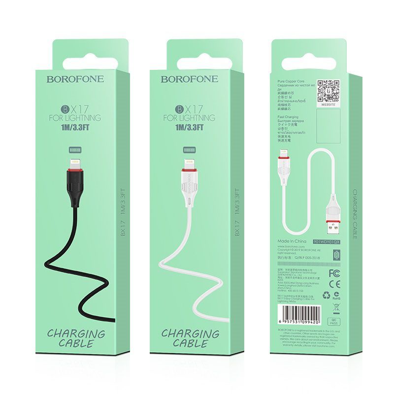 USB кабель Borofone BX17 Lightning 2.4A 1m білий