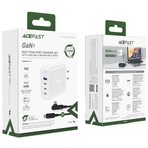ACEFAST A37 – це практичний, ефективний, швидкий та надійний мережевий зарядний пристрій, що має вихідну потужність 100 Вт, підтримує протокол швидкого заряджання та сумісний з більшістю смартфонів та планшетів.