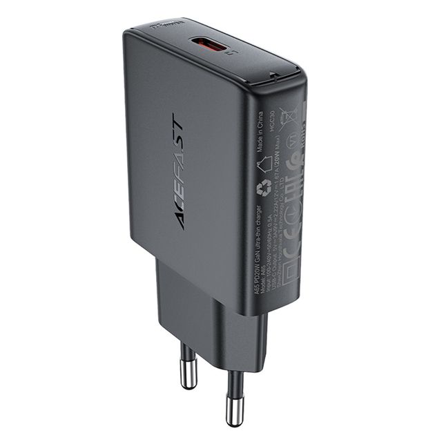 Зарядний пристрій Acefast A65 чорний, Type-C PD 20W GaN