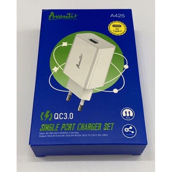 Зарядний пристрій Avantis A425 1USB QC3.0 White
