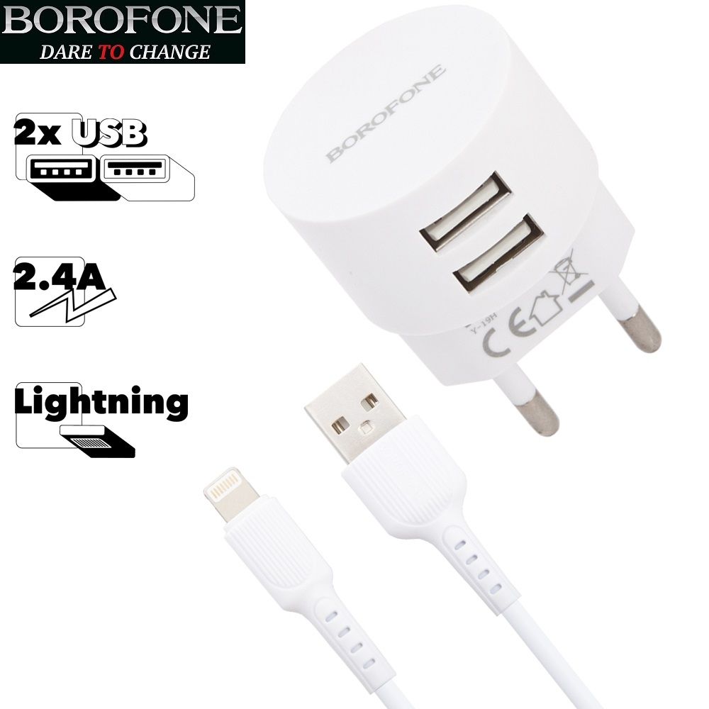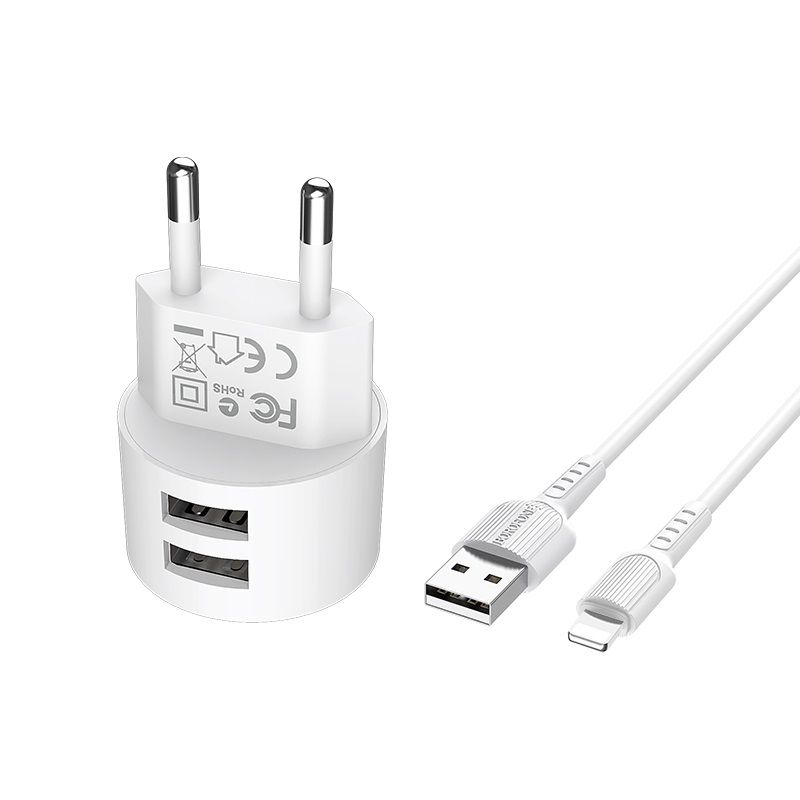 Зарядний пристрій Borofone BA23A Lightning 2USB 2.4A White