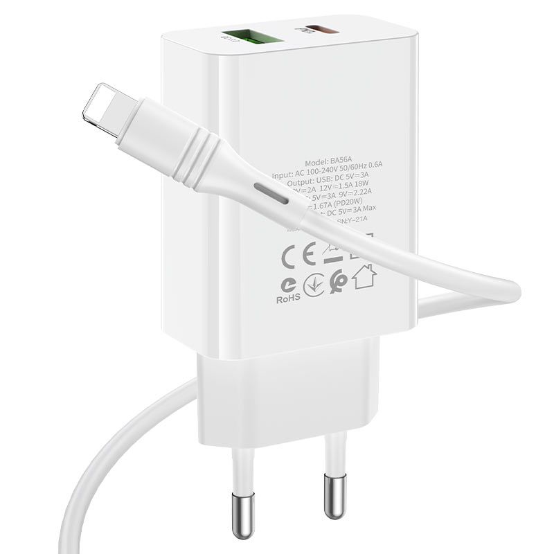 Зарядний пристрій Borofone BA56A PD 20W + QC3.0 Type-C to Lightning White