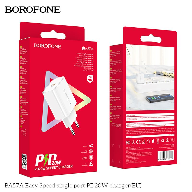 Білий зарядний пристрій Borofone BA57A PD 20W 3A