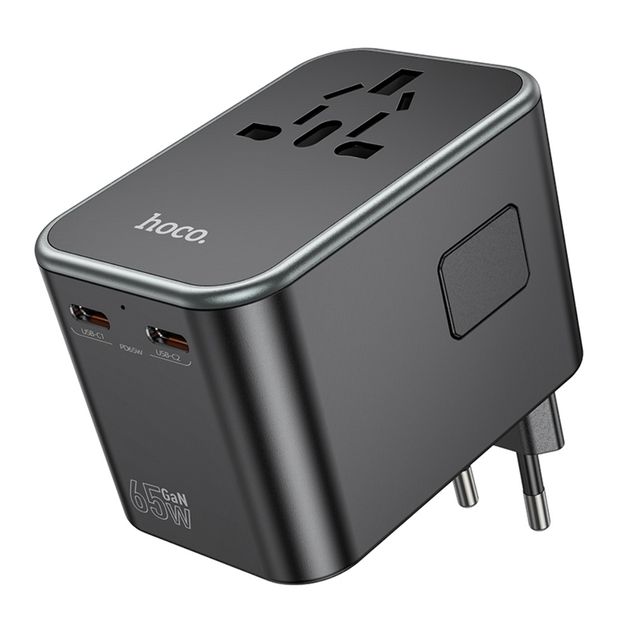 Мережевий зарядний пристрій Hoco AC17 USB/2 PD Type-C 65W black з швидкою зарядкою