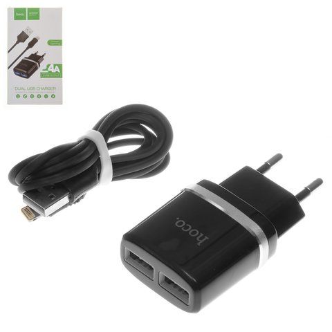 Зарядний пристрій Hoco C12 з двома USB 2.4A Black + Cable для iPhone Lightning Black