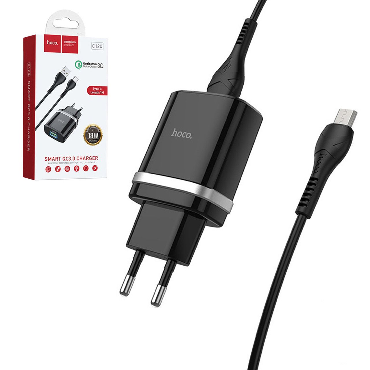 Зарядний пристрій Hoco C12Q QC 3.0 18W Micro Black