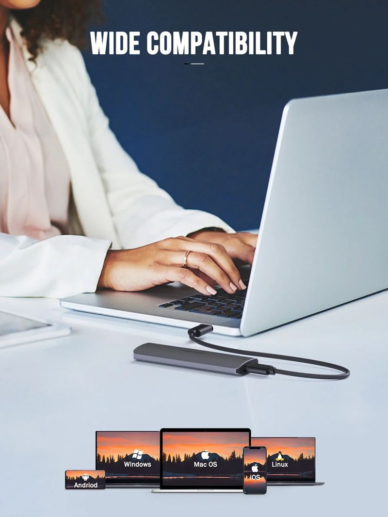 - Підтримує M.2 NVMe SSD з роз'ємами M-Key та B&M Key, підходить для різних брендів (Samsung, Kingston, Toshiba та ін.).