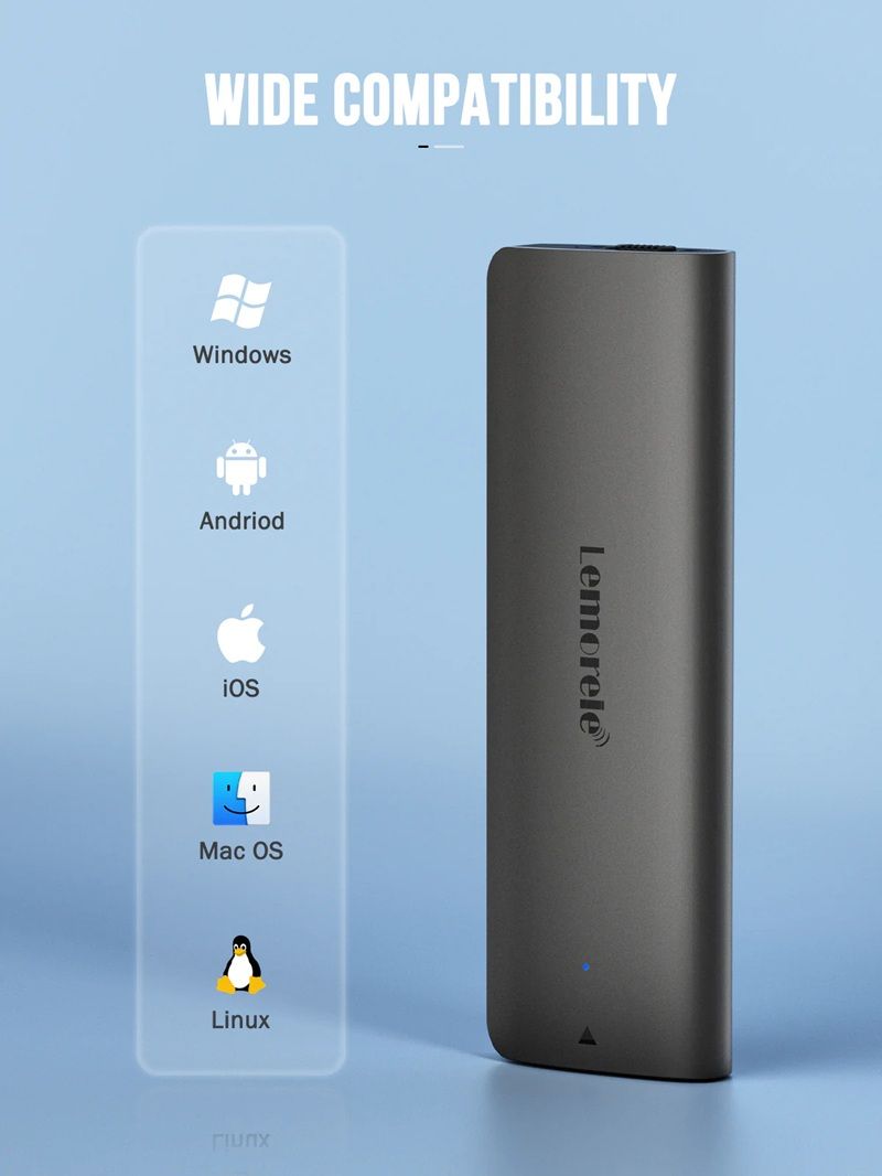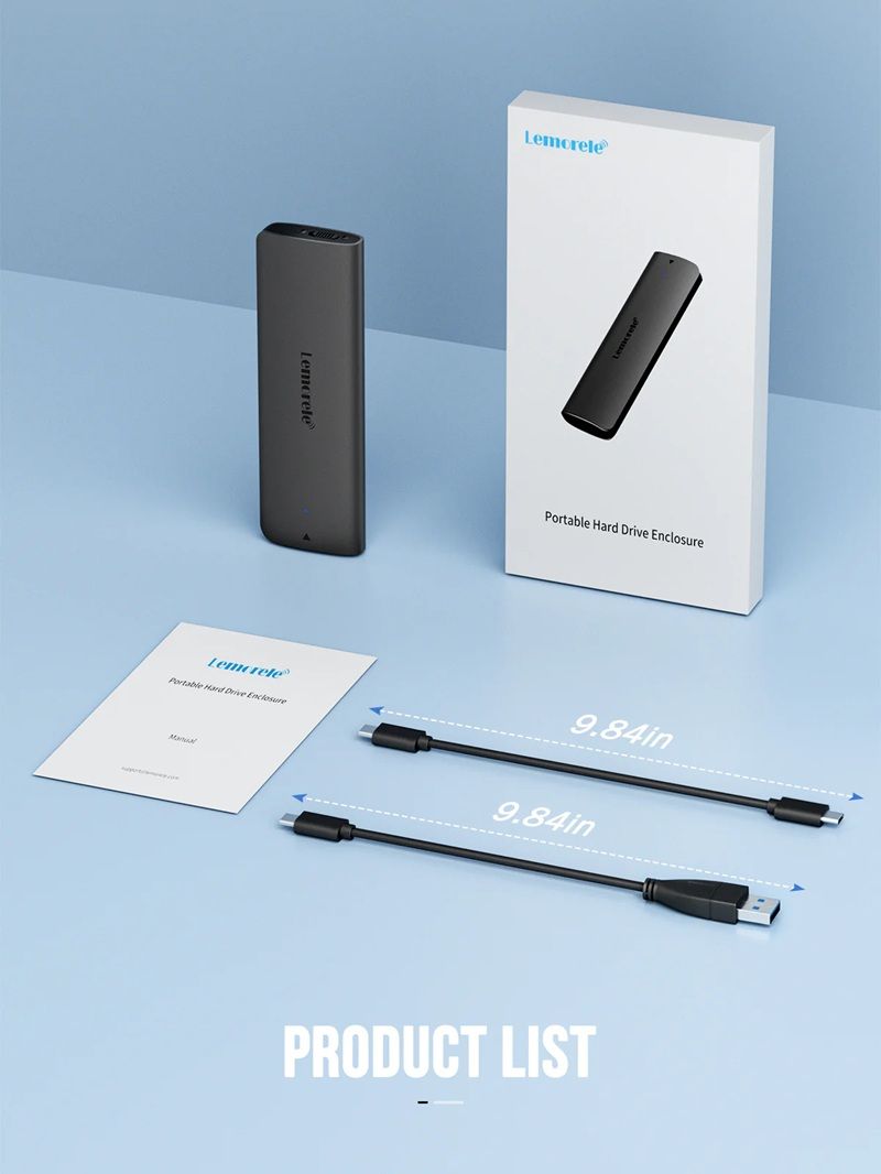 Зовнішній корпус Lemorele SD1L призначений для встановлення SSD M.2 NVMe та їх використання в якості портативних накопичувачів. Завдяки інтерфейсу USB 3.1 Gen2 та підтримці швидкості передачі даних до 10 Гбіт/с, цей адаптер ідеально підходить для швидкої передачі файлів, резервного копіювання даних та розширення пам'яті.